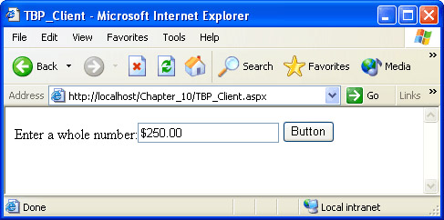 Save TBP_Client.aspx, build the project, and then browse the page. The output should look similar to the following illustration.