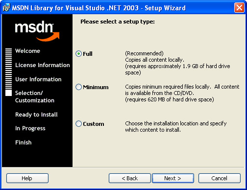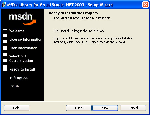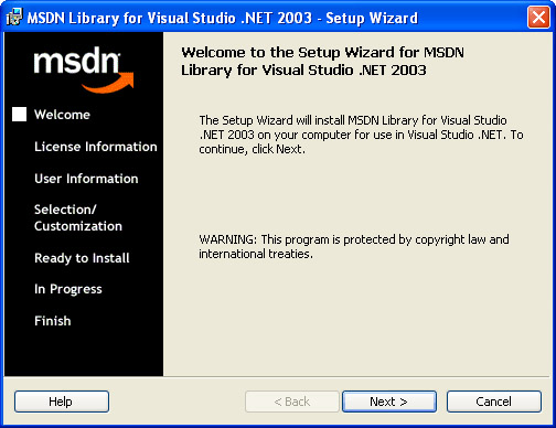 You can now install the MSDN Library, which provides product documentation and help for Visual Studio .NET.