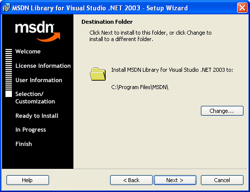 If desired, click Change to change the folder to which the MSDN Library will be installed, and click Next.