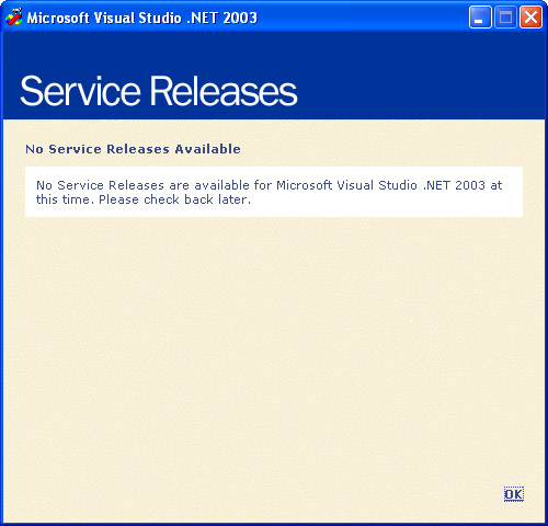 If a service release is available, you will be prompted to install it. Otherwise, you will see the following dialog box.