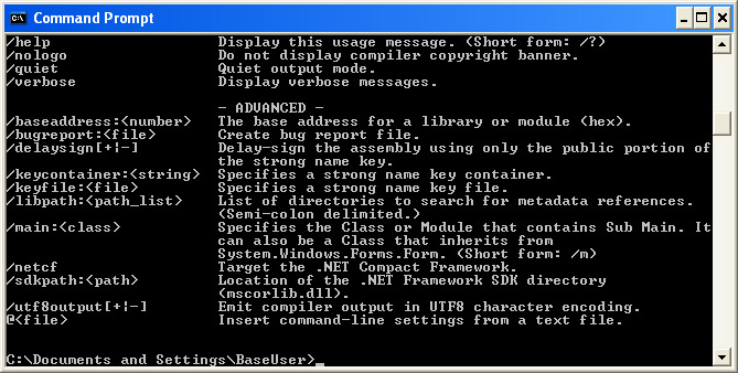 Test the second path modification by opening a command prompt from the Start menu and running vbc /?.