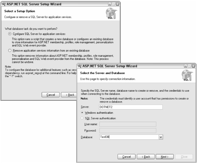 The provider model design pattern is also very useful in the migration of legacy systems that already use their own custom tables and stored procedures. Your legacy database may already contain thousands of records of user information, and you want to avoid losing them, but now you want to modify your site to take advantage of the new Membership class. Instead of creating a custom application to migrate data to a new data store (or using SQL Server DTS to copy the data from your tables to the new tables used by the standard SqlMembershipProvider), you can just create your own custom provider that directly utilizes your existing tables and stored procedures. If you're already using a business class to access your account's data from the ASP.NET pages, then creating a compliant provider class may be just a matter of changing the name and signature of some methods. Alternately, you can follow this approach: Keep your current business class intact, but make it private, and then move it inside a new provider class that delegates the implementation of all its methods and properties to that newly private legacy business class. The advantage of doing this instead of just using your current business class "as is" is that you can change to a different data store later by just plugging it into the membership infrastructure — you wouldn't have to change anything in the ASP.NET pages that call the built-in Membership class. |