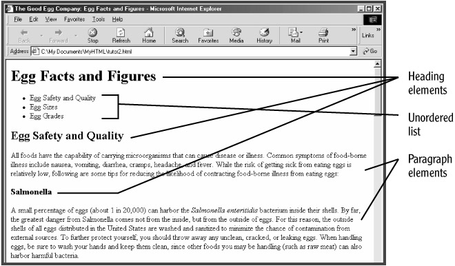 4. Run your browser and open tutor2.html. (If you need help opening a local HTML file in your browser, see "Opening an HTML File in Your Web Browser" in the previous session.) What you see in your browser should closely match what is shown in Figure 3.1.
