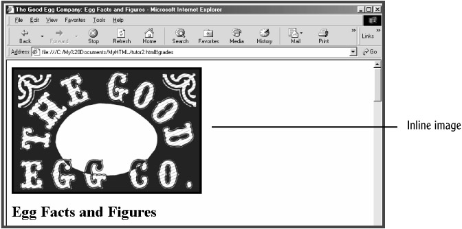 In the example, the SRC (Source) attribute specifies the file name of the image to be displayed (src="goodegg.gif").