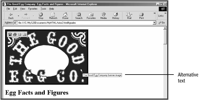 Many browsers will also display alternative text when the mouse is passed over an image, so using the ALT attribute can also be a good way to include additional information, or a caption, for an image (see Figure 3.13).