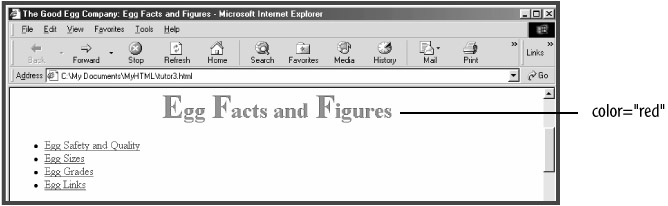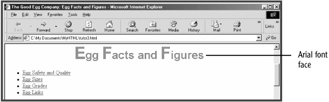 Use the FACE attribute to specify that the H1 element should be displayed in an Arial font face (see Figure 4.23):