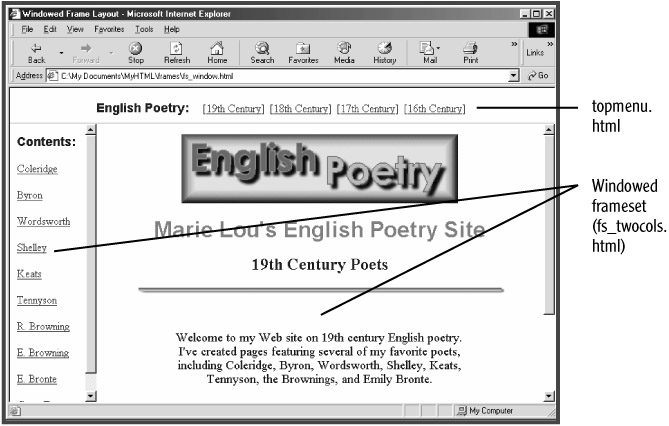 Figure 6.11: A windowed frameset page is displayed within a frame (or window) in a linking frameset page.