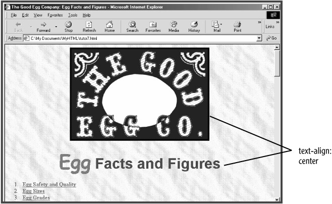 It is important to note that the text-align property does not horizontally align the element to which it is applied, but only that element's contents (such as its text or an image). A different procedure must be followed to center or right-align an element, which will be covered later in this session, in "Controlling Margins, Padding, and Borders."