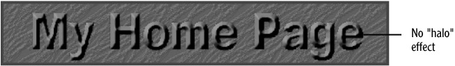 However, if you want to display a text banner saved as a transparent GIF, you need to be mindful that turning on anti-aliasing for the text in your image can cause problems when you display your image in a Web page with a dark background (or a background color or image that is significantly different in color from your image's background). That is because anti-aliasing blends the edges of letterforms with the image's background color; for instance, if your image's background color is white, but your Web page's background color or image is a dark color, you will see a very noticeable white "halo" effect displayed around the image's letterforms. An example file, myhome_halo.html, that demonstrates this in action is available with the other example files (see Figure C.5).