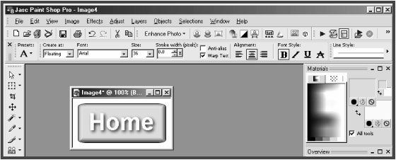Figure C.10: A 3D button with a drop shadow effect is created in Paint Shop Pro 8.