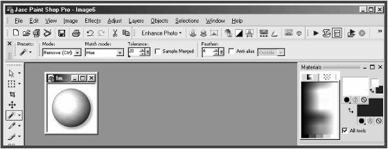 Figure C.12: A three-dimensional graphic ball with a drop shadow is created in Paint Shop Pro 8.