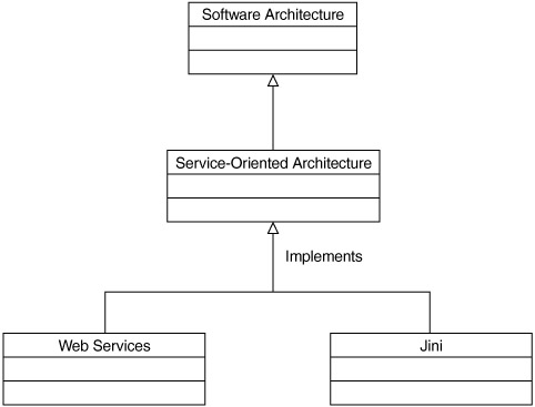 The goal in developing Jini was to create a dynamically networked environment for devices, services, and applications. In this environment, services and devices could be added to and removed from the network dynamically (Sun Microsystems, Jini Network Technology, www.sun.com/jini). There is more interest lately in the software development community about the concepts behind SOA because of the arrival of Web services.