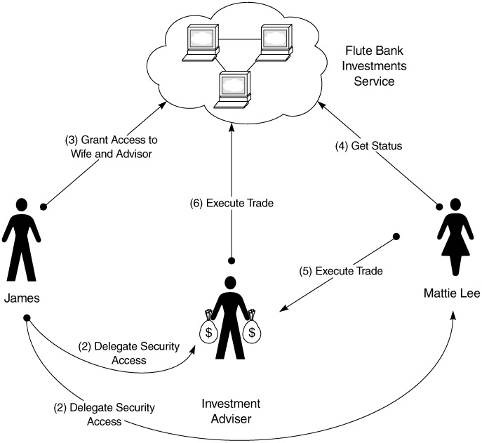 James and his wife, Mattie, do all their financial services transactions through Flute Bank. They also take advantage of the Flute Bank Investments Web service that allows them to perform portfolio management activities as well as interact with their investment adviser. Currently, James is the only account that can access this service.