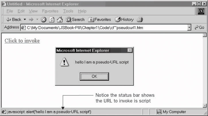 One very important way to use the JavaScript pseudo-URL is within a link, as demonstrated here: