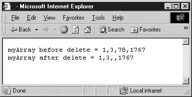 In JavaScript, the delete operator is used to remove a property from an object and to remove an element from an array. The following script illustrates its use for the latter purpose: