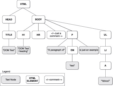 <<!DOCTYPE html PUBLIC "-//W3C//DTD XHTML 1.0 Transitional//EN" "http://www.w3.org/TR/xhtml1/DTD/xhtml1-transitional.dtd">> <<html xmlns="http://www.w3.org/1999/xhtml">> <<head>> <<title>>DOM Test<</title>> <</head>> <<body>> <<h1>>DOM Test Heading<</h1>> <<hr />> <<!-- Just a comment -->> <<p>>A paragraph of <<em>>text<</em>> is just an example<</p>> <<ul>> <<li>><<a href="/">>Yahoo!<</a>><</li>> <</ul>> <</body>> <</html>>