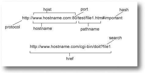 The links[] collection contains all the objects corresponding to each <<a href="">> found in the document. As it is an array we can, of course, access its length with document.links.length. However, we can manipulate the URLs within the href attributes of each link. Link objects under most browsers will have the same properties as the Location object, including hash, host, hostname, href, pathname, port, protocol, and search. These properties correspond to the individual portions of a URL except href, which contains the whole URL.