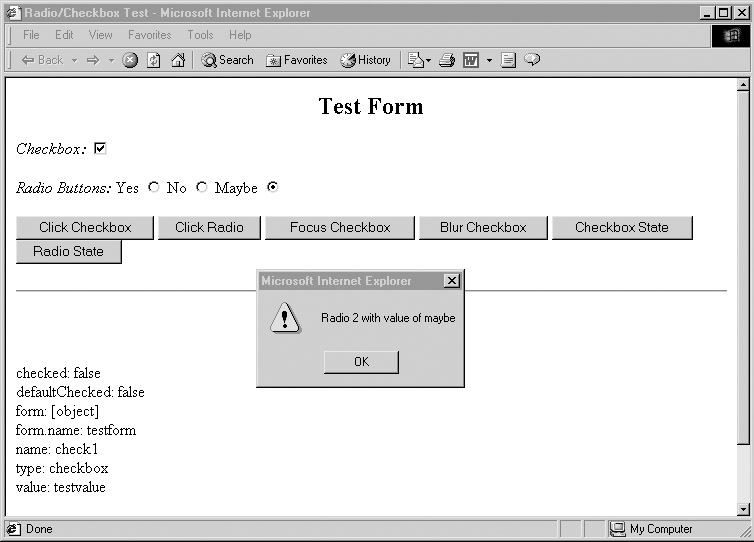 A few properties do require some brief discussion. First, the form property references the Form object that element is enclosed within. So, given