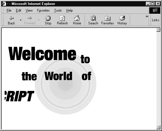 You can find a list of methods supported by the Flash player at Macromedia’s Web site (for example, at http://www.macromedia.com/support/flash/publishexport/scriptingwithflash/). The methods we will use in our simple example are GotoFrame(), IsPlaying(), Play(), Rewind(), StopPlay(), TotalFrames(), and Zoom(). The following example controls a simple Flash file extolling the wonders of JavaScript.