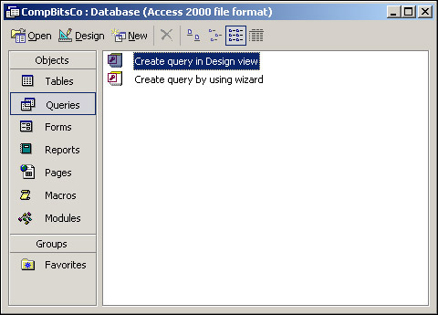 Let's try this out in Access and see the results. In our CompBitsCo Access database, click on Queries under the Objects tab, as shown in Figure 17-19.