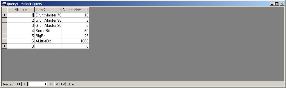 Run this query in Access. It will remove the items SomeBit and ALittleBit, leaving our table with the records shown in Figure 17-26.