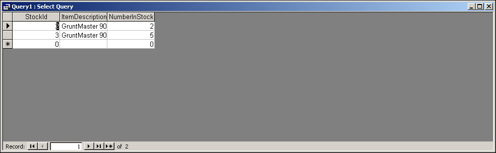 For example, if we want to retrieve records with just the fields StockId, ItemDescription, and NumberInStock, our query would start as follows:
